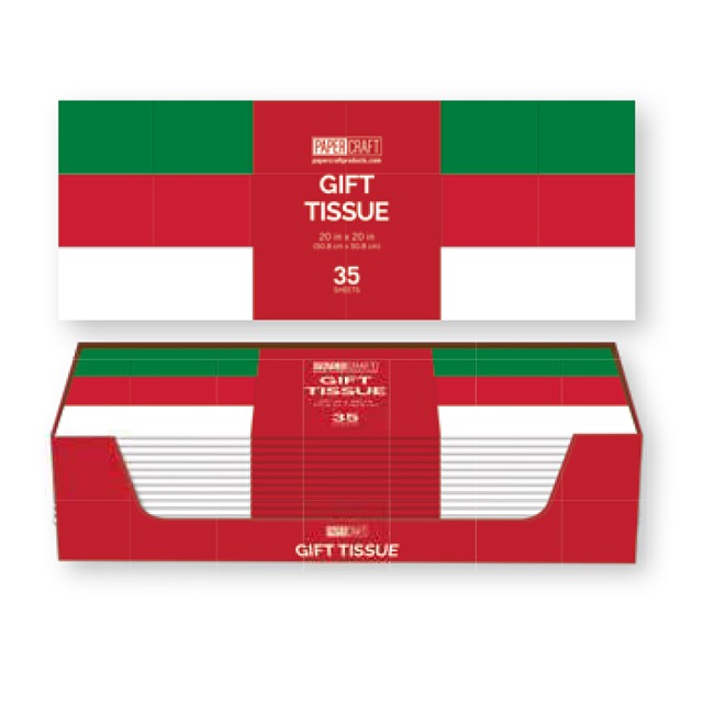 GIFT TISSUE PAPER DISPLAY 35SHT/PK (20"x20') RED/GREEN/WHITE