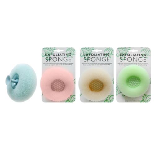 EXFOLIATING SHOWER SPONGE WITH SUCTION 4 ASST COLORS