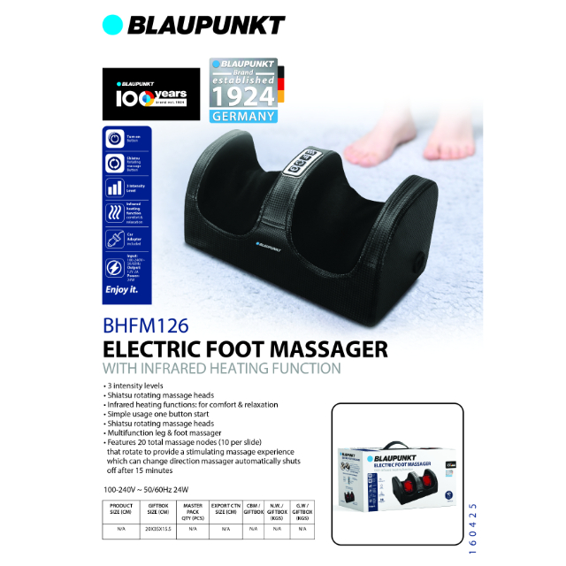 BLAUPUNKT ELECTRIC FOOT MASSAGER WITH INFRARED HEATING 24W