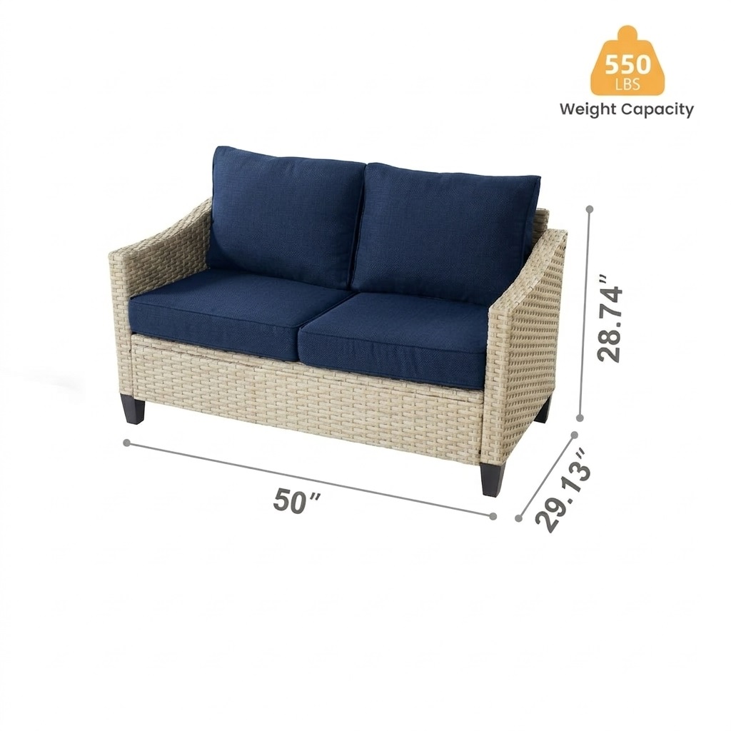 Get ready to relax in the stylish and comfortable wicker patio loveseat sofa. This loveseat features a sturdy metal frame wrapped in all-weather handwoven wicker. The high-density sponge seat cushions and fluffy back cushions provide you a strong lumbar support. Deep seat and curved back design give you a comfortable sitting experience.