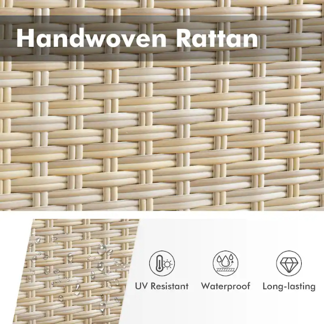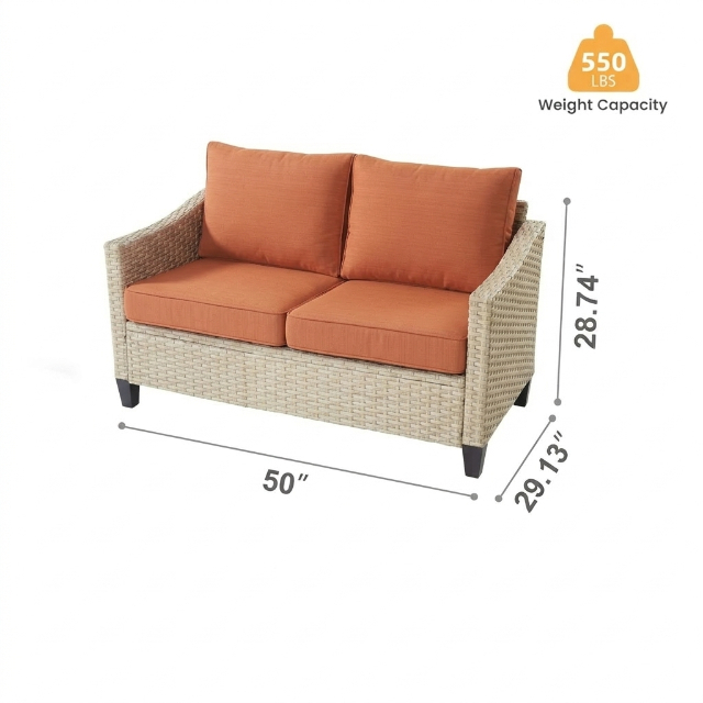 Get ready to relax in the stylish and comfortable wicker patio loveseat sofa. This loveseat features a sturdy metal frame wrapped in all-weather handwoven wicker. The high-density sponge seat cushions and fluffy back cushions provide you a strong lumbar support. Deep seat and curved back design give you a comfortable sitting experience.
