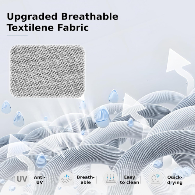 Ergonomically designed with durable Textilene fabric, offering a perfect balance of support and comfort. Weather-resistant, UV-protected, and rainproof for year-round use.