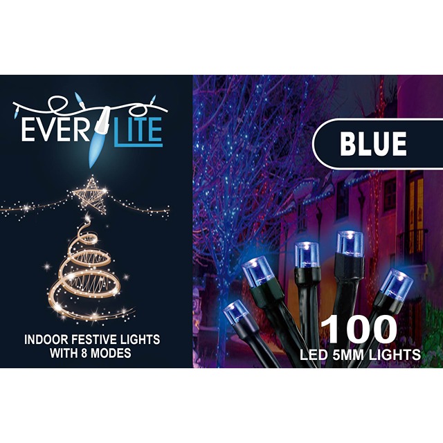 LED 100 5MM MINI LIGHTS W/8 MODES BLUE