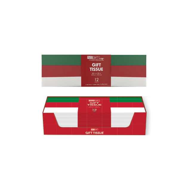 GIFT TISSUE PAPER DISPLAY 12SHT/PK (20"x20') RED/GREEN/WHITE