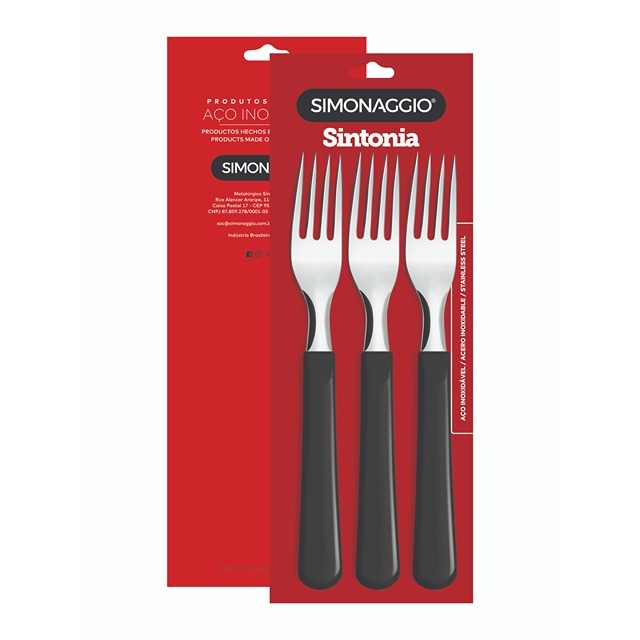 S/STEEL 3PC DINNER FORK SET W/PLASTIC HANDLE BLACK