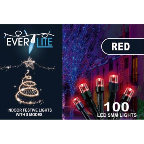 LED 100 5MM MINI LIGHTS W/8 MODES RED