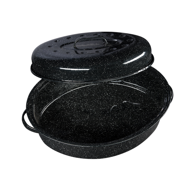 GRANITEWARE 18" COVERED OVAL ROASTER BLACK