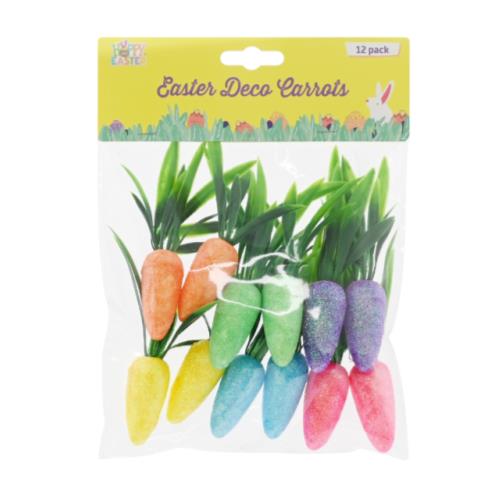 EASTER CARROTS RAINBOW GLITTER 10CM 12PK