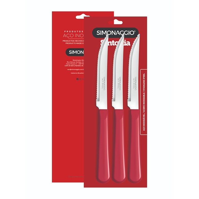 S/STEEL 3PC STEAK KNIFE SET W/PLASTIC HANDLE RED