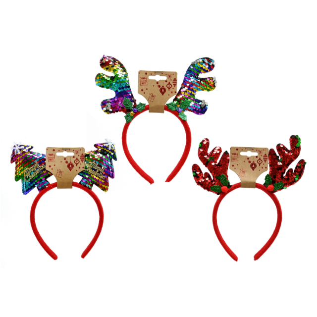 XMAS ANTLERS HEADBAND PLUSH 26x27CM ASST GREEN/RED