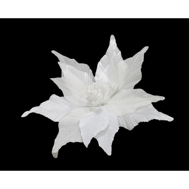 CLIP ON POINSETTIA 30cm VELVET GLITTER WHITE