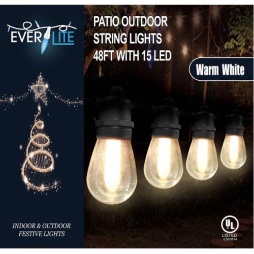 PATIO OUTDOOR STRING LIGHTS 48FT 15 LED WARM WHITE UL