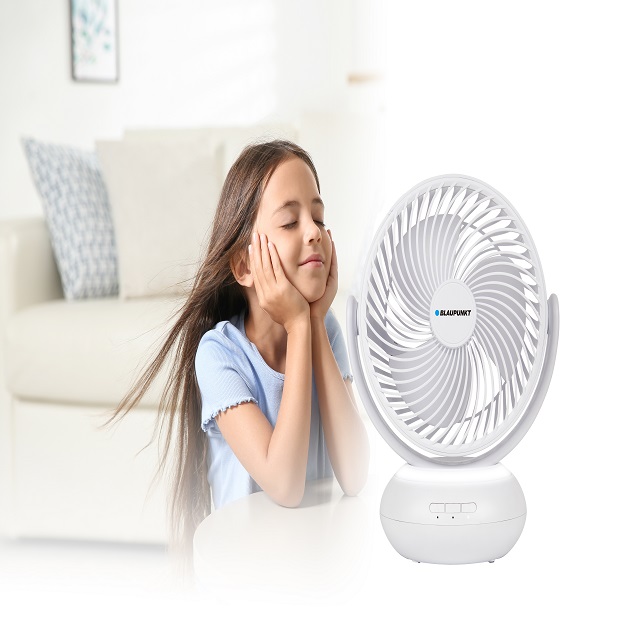 BLAUPUNKT 7" RECHARGABLE FAN WITH LED RING LIGHT 3 SPEEDS