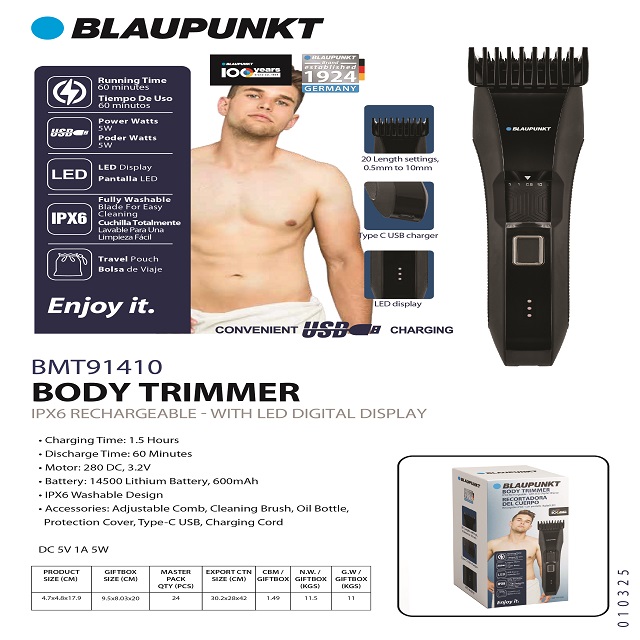 BLAUPINKT BODY TRIMMER RECHARGEABLE- WITH LED DIGITAL DISPLA