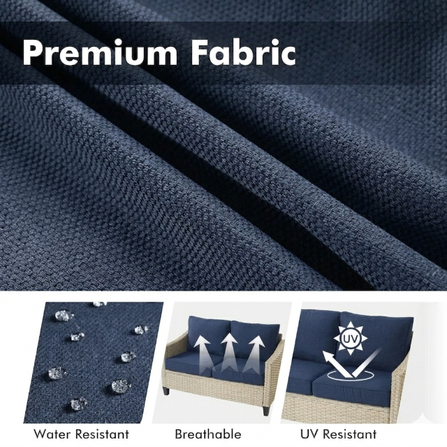 Get ready to relax in the stylish and comfortable wicker patio loveseat sofa. This loveseat features a sturdy metal frame wrapped in all-weather handwoven wicker. The high-density sponge seat cushions and fluffy back cushions provide you a strong lumbar support. Deep seat and curved back design give you a comfortable sitting experience.