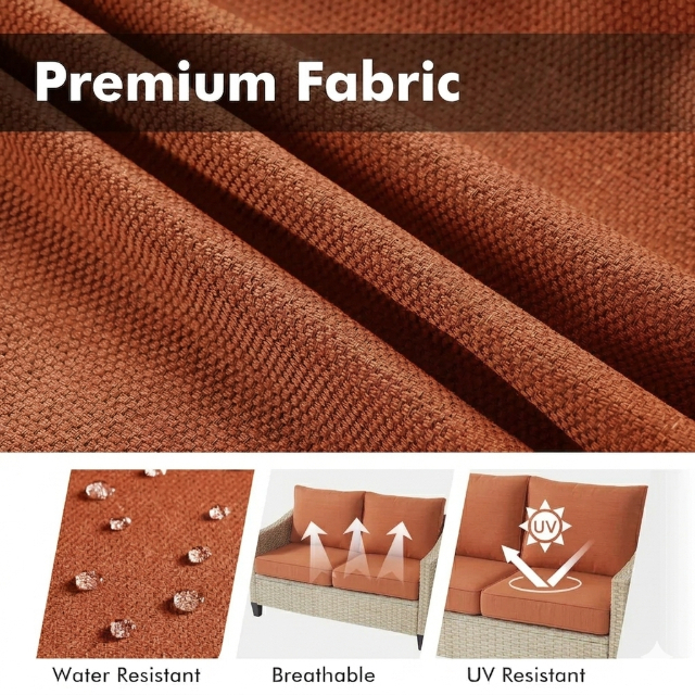 Get ready to relax in the stylish and comfortable wicker patio loveseat sofa. This loveseat features a sturdy metal frame wrapped in all-weather handwoven wicker. The high-density sponge seat cushions and fluffy back cushions provide you a strong lumbar support. Deep seat and curved back design give you a comfortable sitting experience.