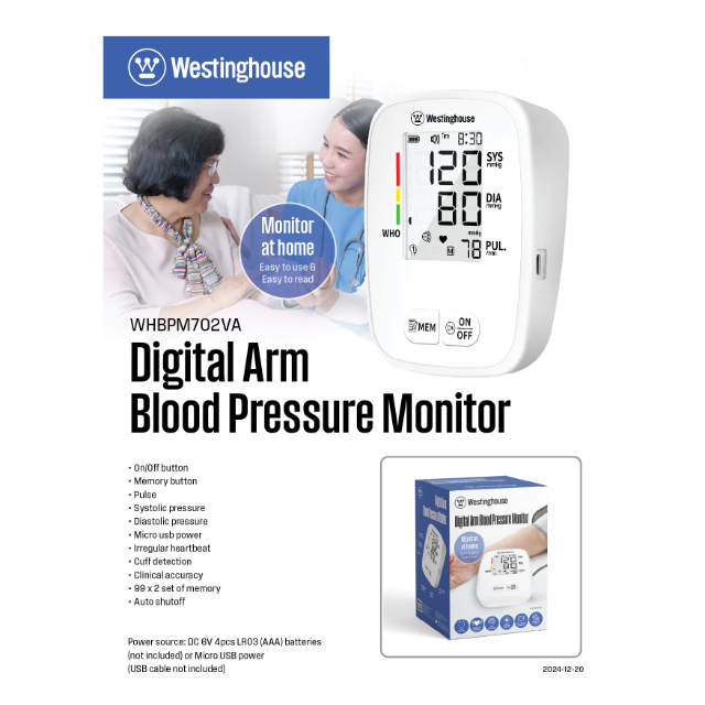 WESTINGHOUSE BP MONITOR USB POWER WITH 99×2 MEMORY