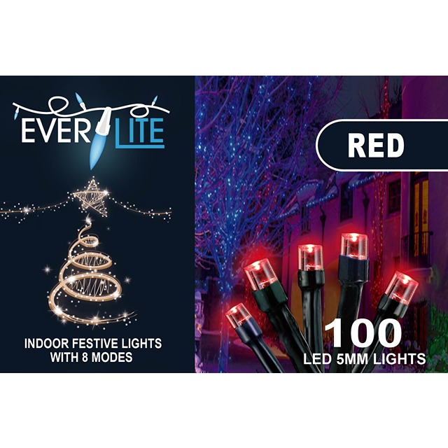 LED 100 5MM MINI LIGHTS W/8 MODES RED