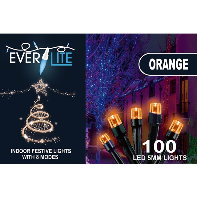 LED 100 5MM MINI LIGHTS W/8 MODES ORANGE