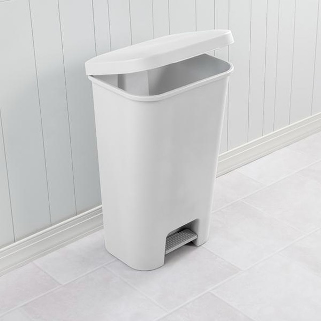 STERILITE 11.9 GALLON STEPON WASTEBASKET WHITE LID AND BASE