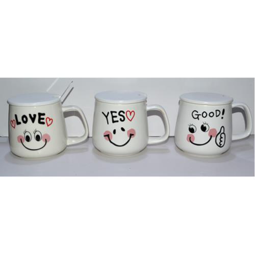 CERAMIC MUG W/CERAMIC LID & SS SPOON ASST 7.9X8.5CM