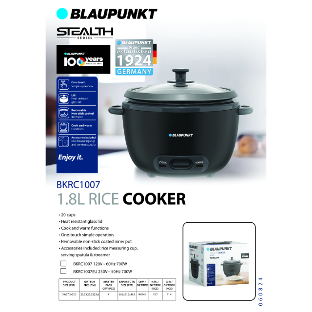 Name: BLAUPUNKT 1.8L/ 20 CUP RICE COOKER 700W