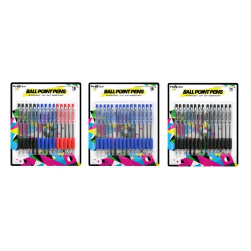 PENS BALL POINT 15PK 3ASST