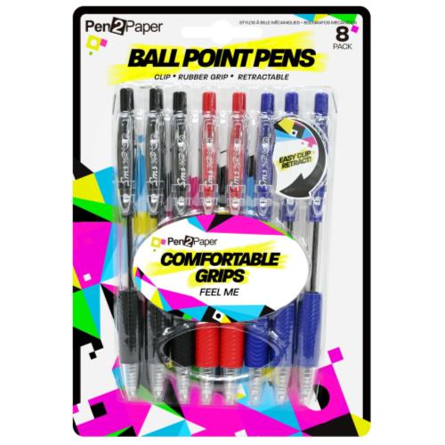 PENS BALL POINT SOFT GRIP 8PK