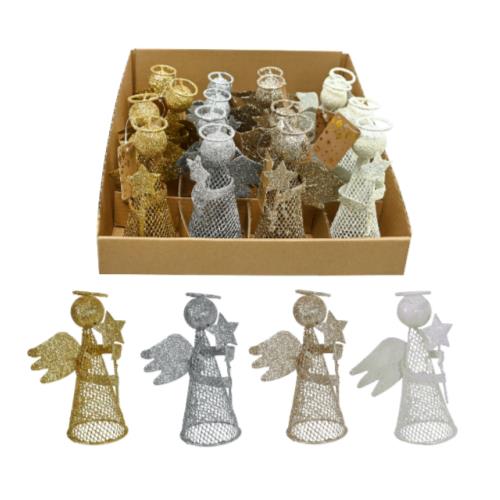 GLITTER METAL ANGEL 14cm ASST