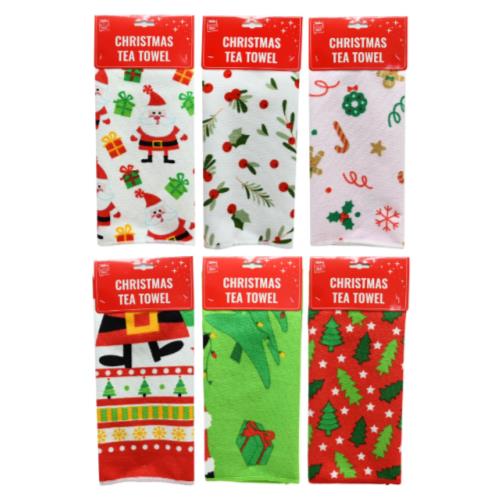 38x63.5cm 6 Designs - White with Santa and Presents, White with Snowman and Santa, White with Trees and Presents, Red with Trees and Stars, Green with Tree, Present and Santa, White with Dancing Santa and Tree.