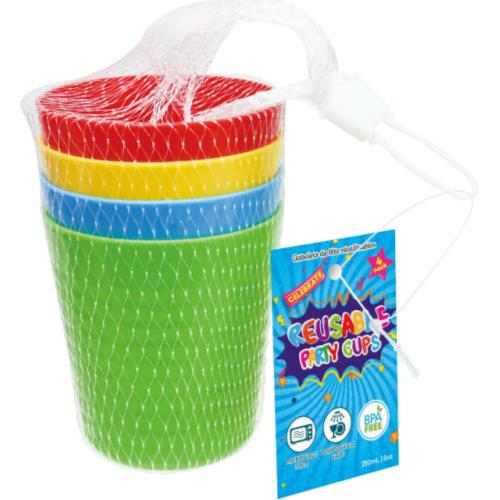 PARTY CUPS 250ML 4 PACK ASST COLORS