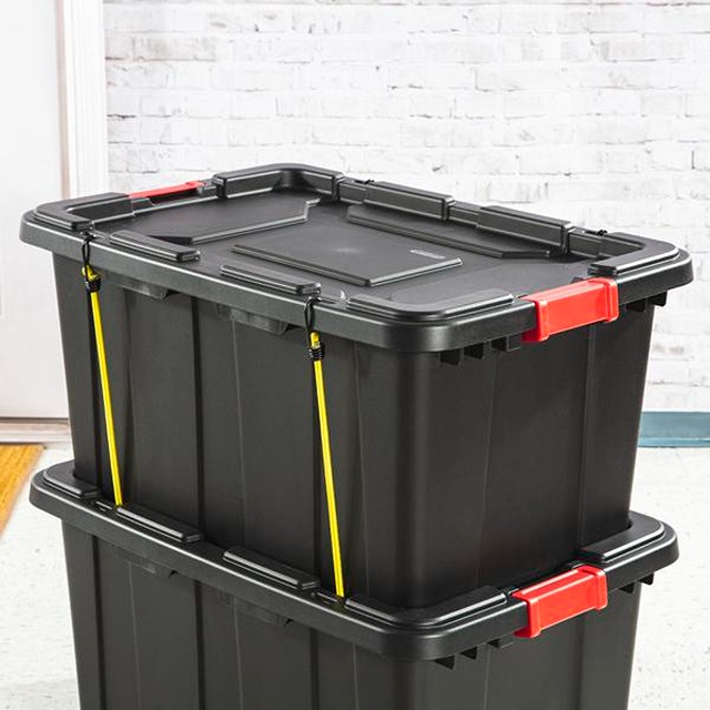 STERILITE 15GAL INDUSTRIAL TOTE BLACK W/RED LATCHES