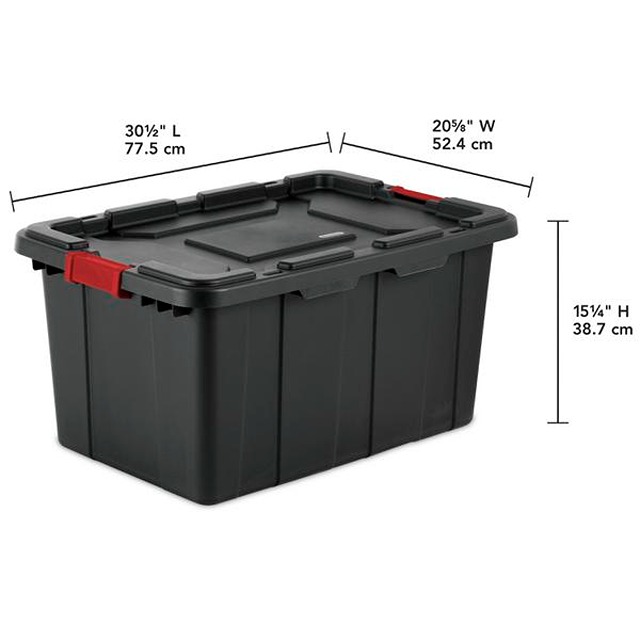 Name: STERILITE 27GAL INDUSTRIAL TOTE BLACK W/RACER RED LATCHES