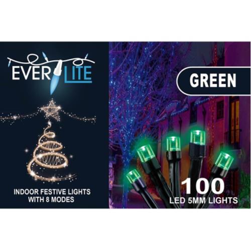 LED 100 5MM MINI LIGHTS W/8 MODES GREEN