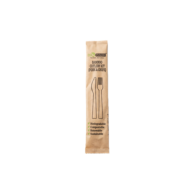 BIOPACK 6.5" BAMBOO FORK & KNIFE KIT INDIVIDUALLY WRAP (250)