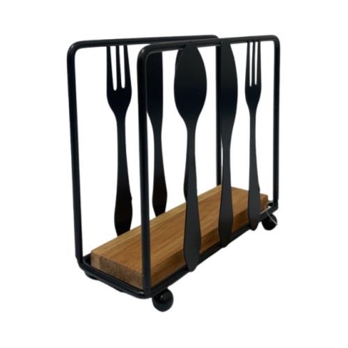 METAL NAPKIN HOLDER W/WOOD BASE BLACK 11x10x5CM
